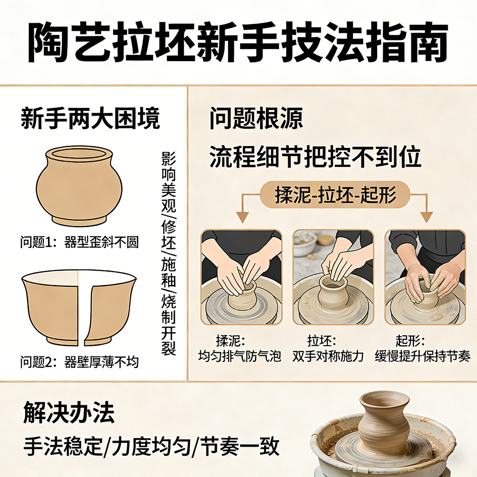 从揉泥到起形:拉坯全流程关键技法,解决器型不圆、壁薄不均问题...